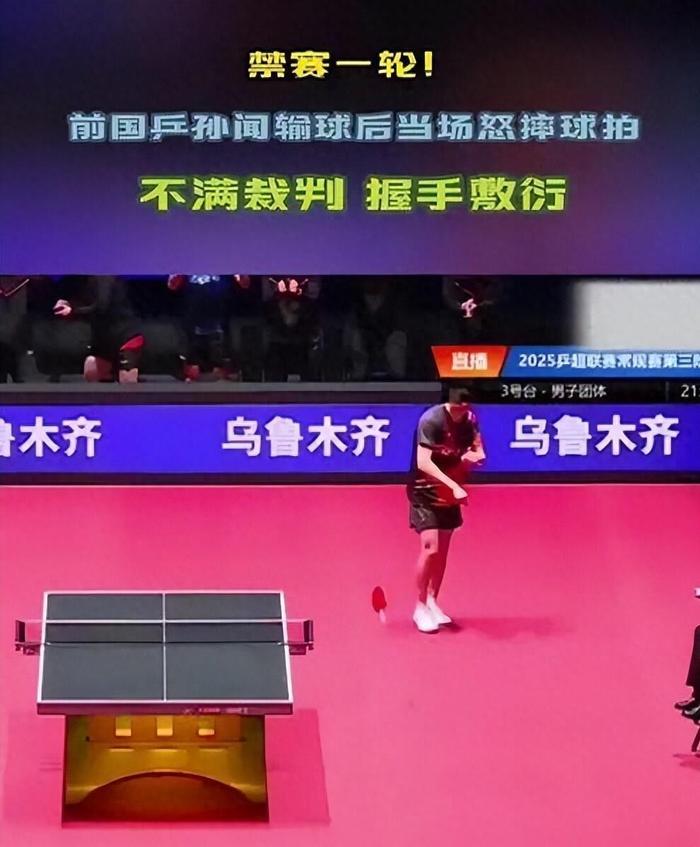 中国乒协对此反应迅速,第二天就发布了处罚决定:孙闻因“违背体育精神和道德风尚”被停赛1轮,这意味着他无法参加当天四川丰谷对阵中超电缆·福建安井的比赛。 处罚还要求孙闻做出深刻检讨,国家队将根据其态度另行处理。
